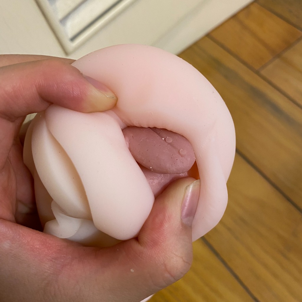 Ở đầu môi, chiếc lưỡi thụt lại cũng là điểm nhấn đáng chú ý của loại Sextoy thủ dâm này.