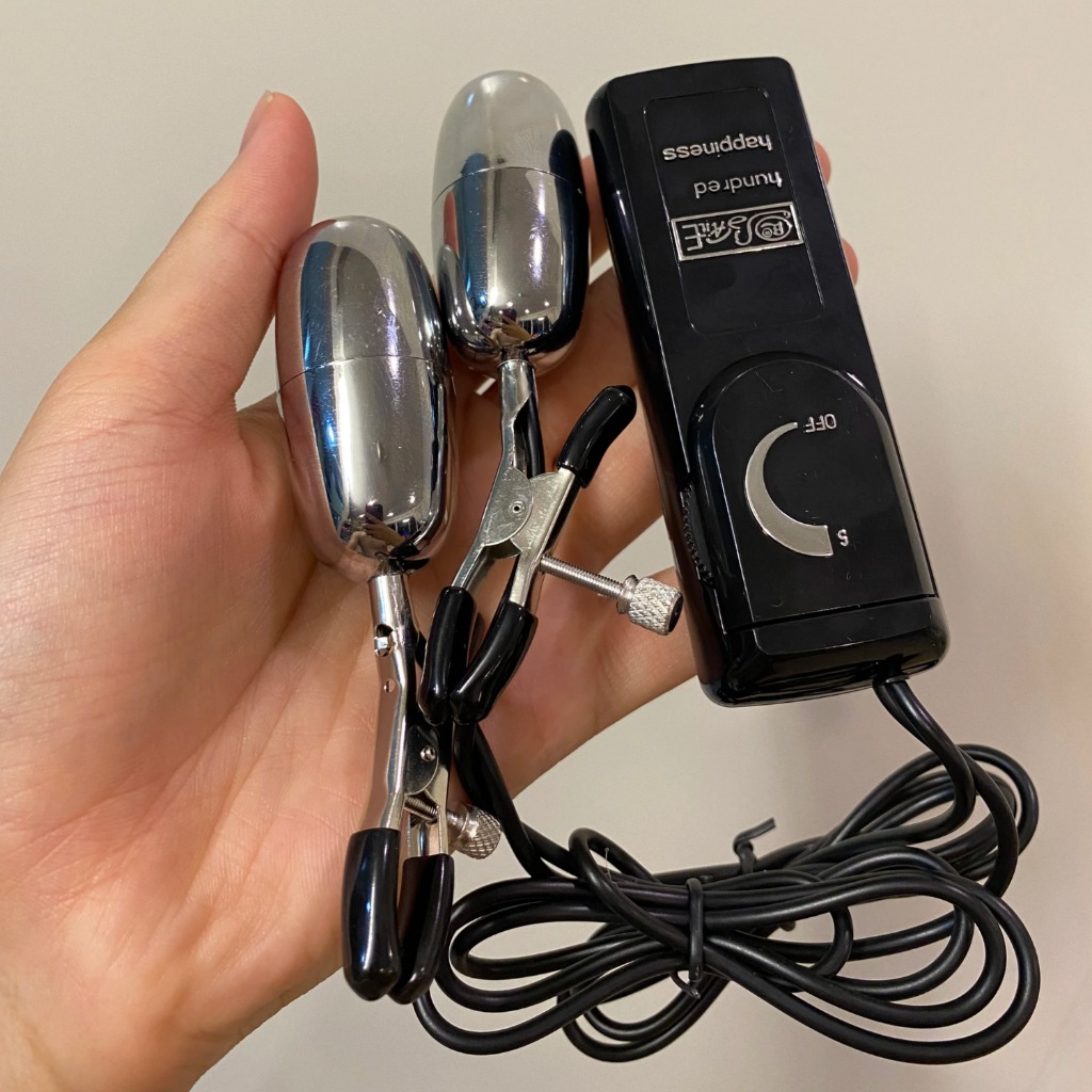 – Sản phẩm gồm 2 bộ phận: Điều khiển có dây nối với 2 trứng rung kẹp đầu ti